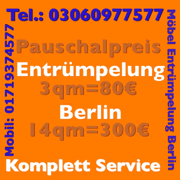 Türmen sich im Wohnung, Abstellraum oder in anderen Räumen jeden Menge Sperrmüll, alte Möbel anderweitige Gegenstände, die künftig nicht mehr benötigt werden, muss eine gründliche Abholung Möbelentsorgung Martin Luther Straße 35 her. Wir bietet alle erforderlichen Arbeiten zum günstigen Komplettpreis. Im Wohnungsauflösung Angebot enthalten sind alle Leistungen von der Anfahrt über das Ausräumen bis hin zum Abtransport und der Abholung Möbelentsorgung Martin Luther Straße 35 beim BSR. Buchen Sie uns - Sperrmüllabholung sind mit unserem erstklassigen Service, jede Menge Praxiserfahrung viel Können im gesamten Raum für Ihnen da!